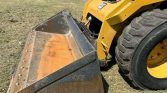 This loader includes auxiliary hydraulics and a hydraulic quick coupler for quick and easy attachment changes. The 85-inch wide bucket is equipped with a durable bolt-on cutting edge, ready for heavy-duty work. The front tires are 14-17.5 NHS, designed for reliable traction.