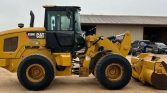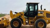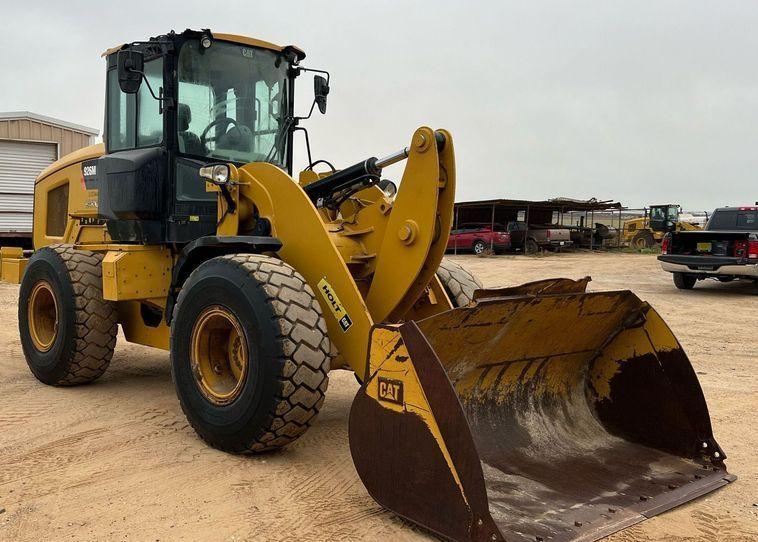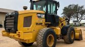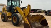 2017 Caterpillar 926M wheel loader with 11,282 hours. Features a 6-cylinder Caterpillar C7.1 diesel engine, powershift 4F-4R transmission, front differential lock, enclosed cab with AC and heat, joystick controls, ride control, backup camera, and auto lube. Equipped with a 3.2 cu.yd. self-leveling bucket (99.7″ wide, bolt-on cutting edge) and 20.5R25 tires.